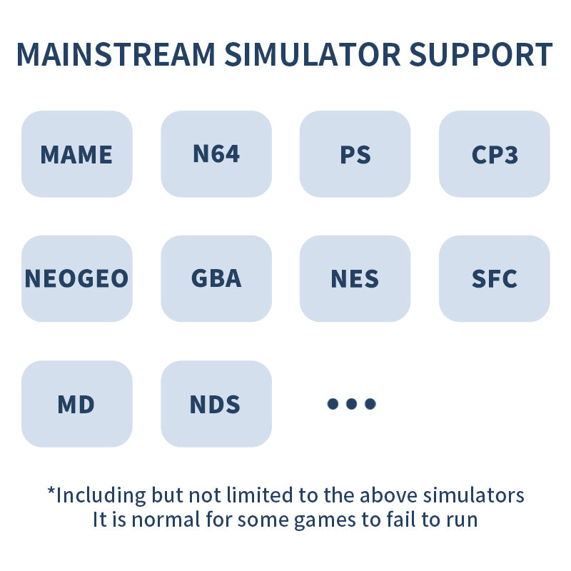 Game:Compatible with various emulators such as MAME/N64/PS/CP3/NEOGEO/GBA/NES/SFC/MD/NDS
